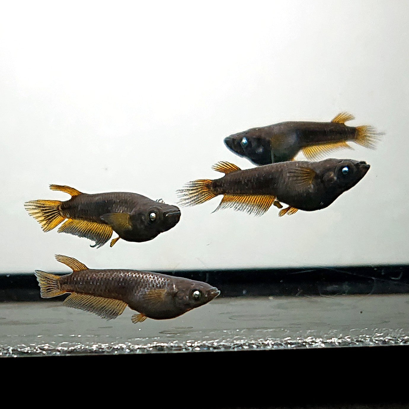 ・北辻GODアースアイ松井ヒレ長です。4匹のセットですので、繁殖にオススメのセット販売になります。若干のキャメルバックが見られるため、特価での販売です。