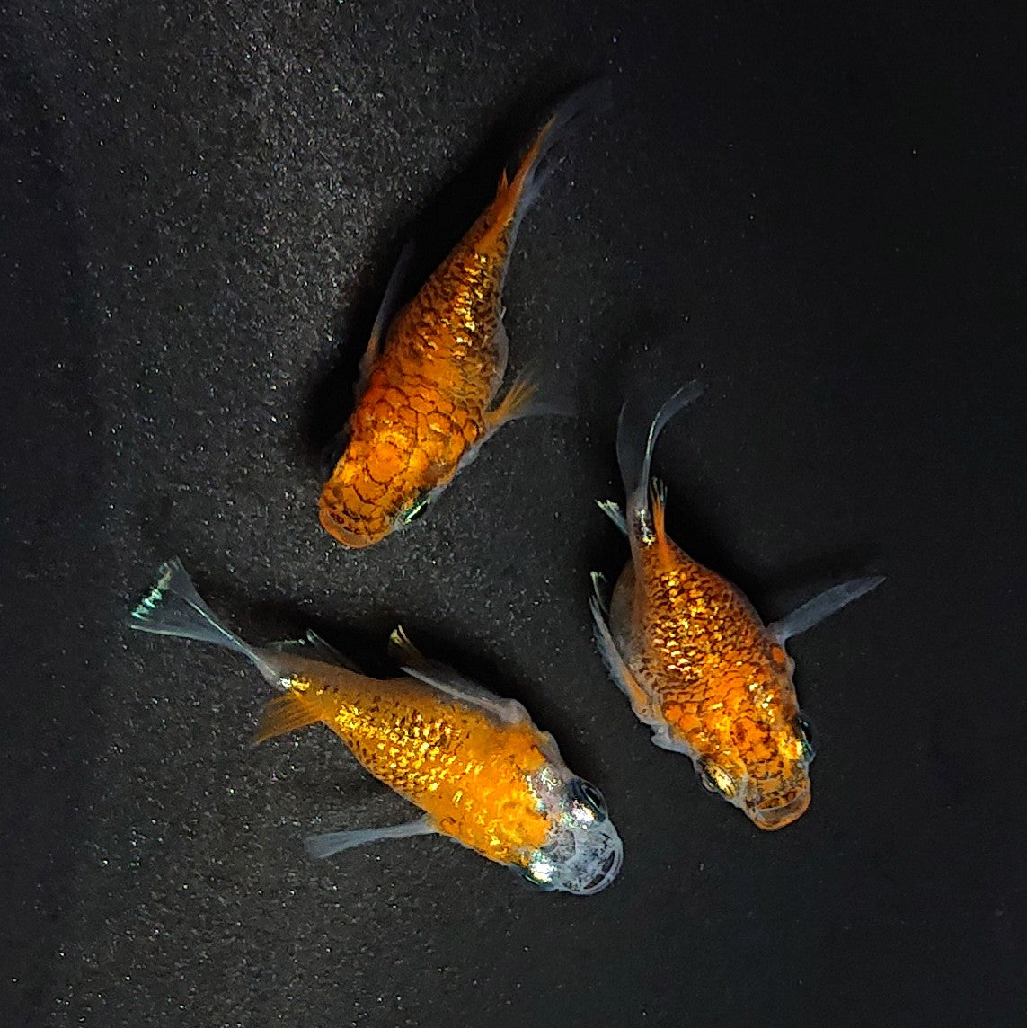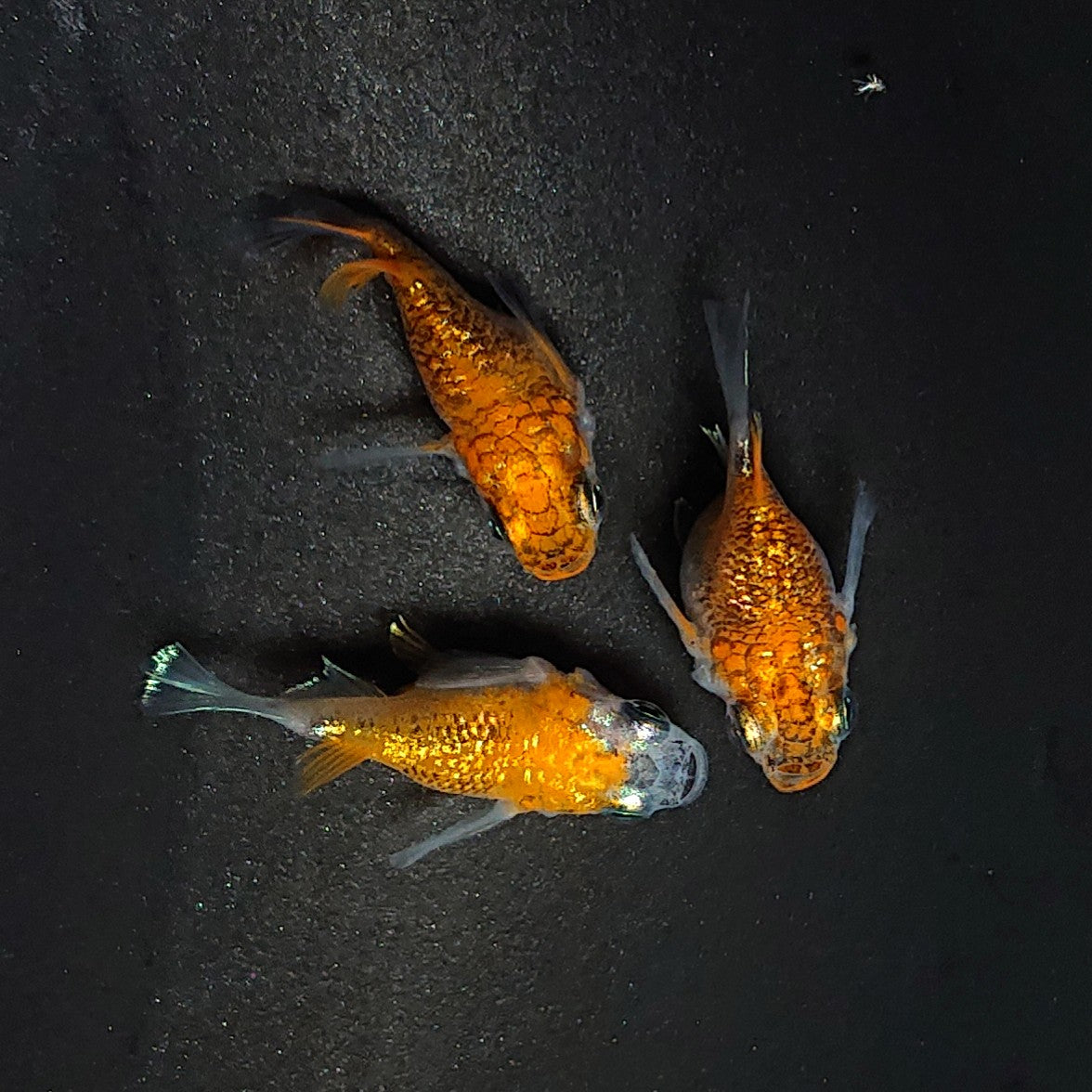 ・夜桜柿色だるまです。3匹のセットですので、繁殖にオススメのセット販売になります。顎骨に若干の難があるため、特価での販売です。