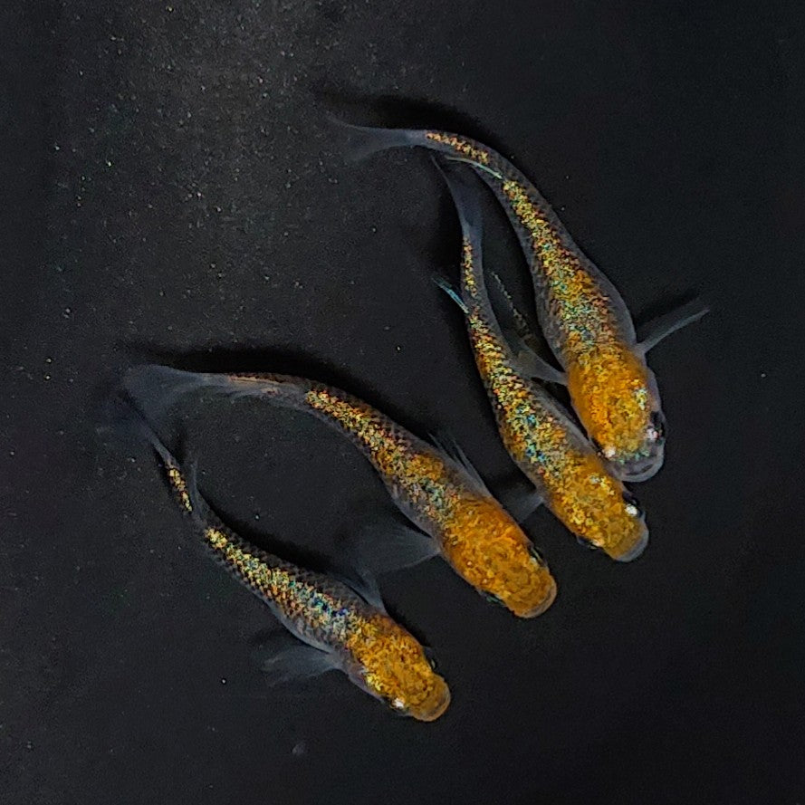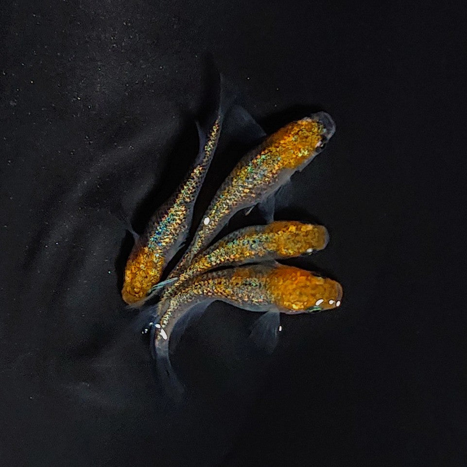 ・トリトン、いぶきにてネプチューンから選抜育種を行った多色系ラメ血統です。丹頂柄と青ラメのコントラストが抜群です。ネプチューンのみの純血統です。