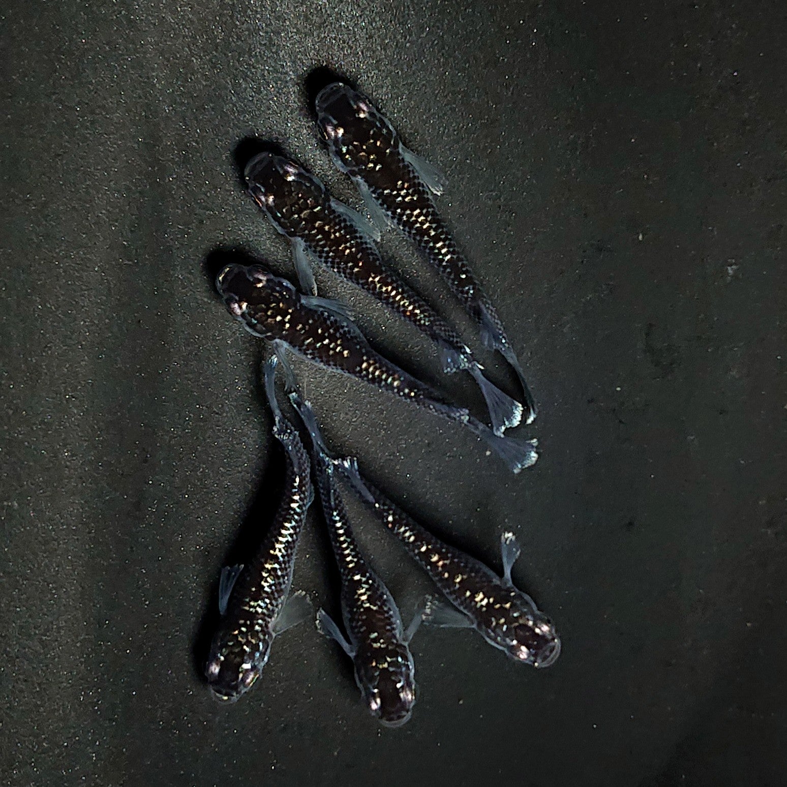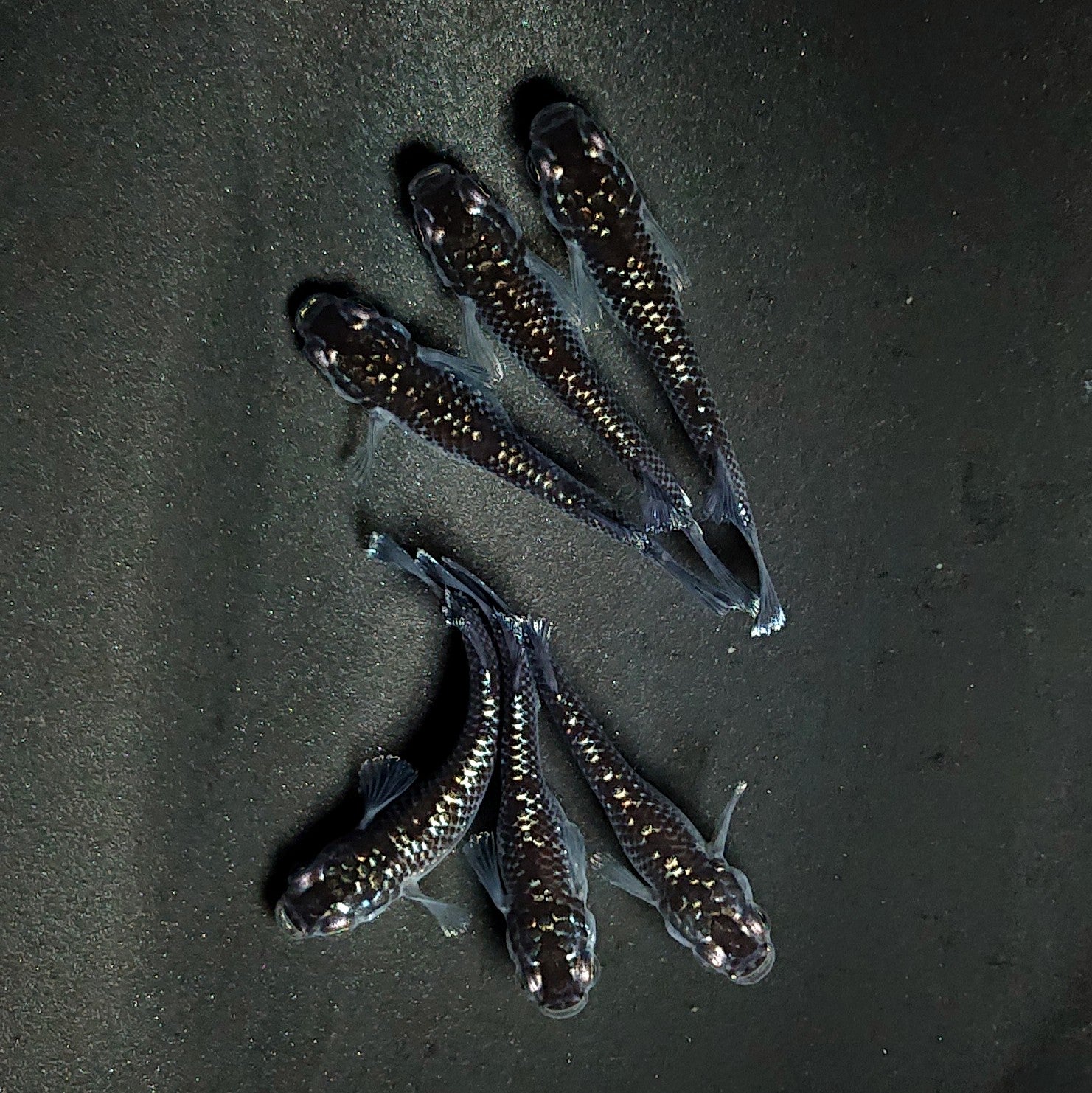 ・ミッドナイトフリルラメtypeです。6匹のセットですので、繁殖にオススメのセット販売になります。ワイドフィン体型品種特有のキャメルバック、脊椎の軽度のクセ等については予めご了承ください。