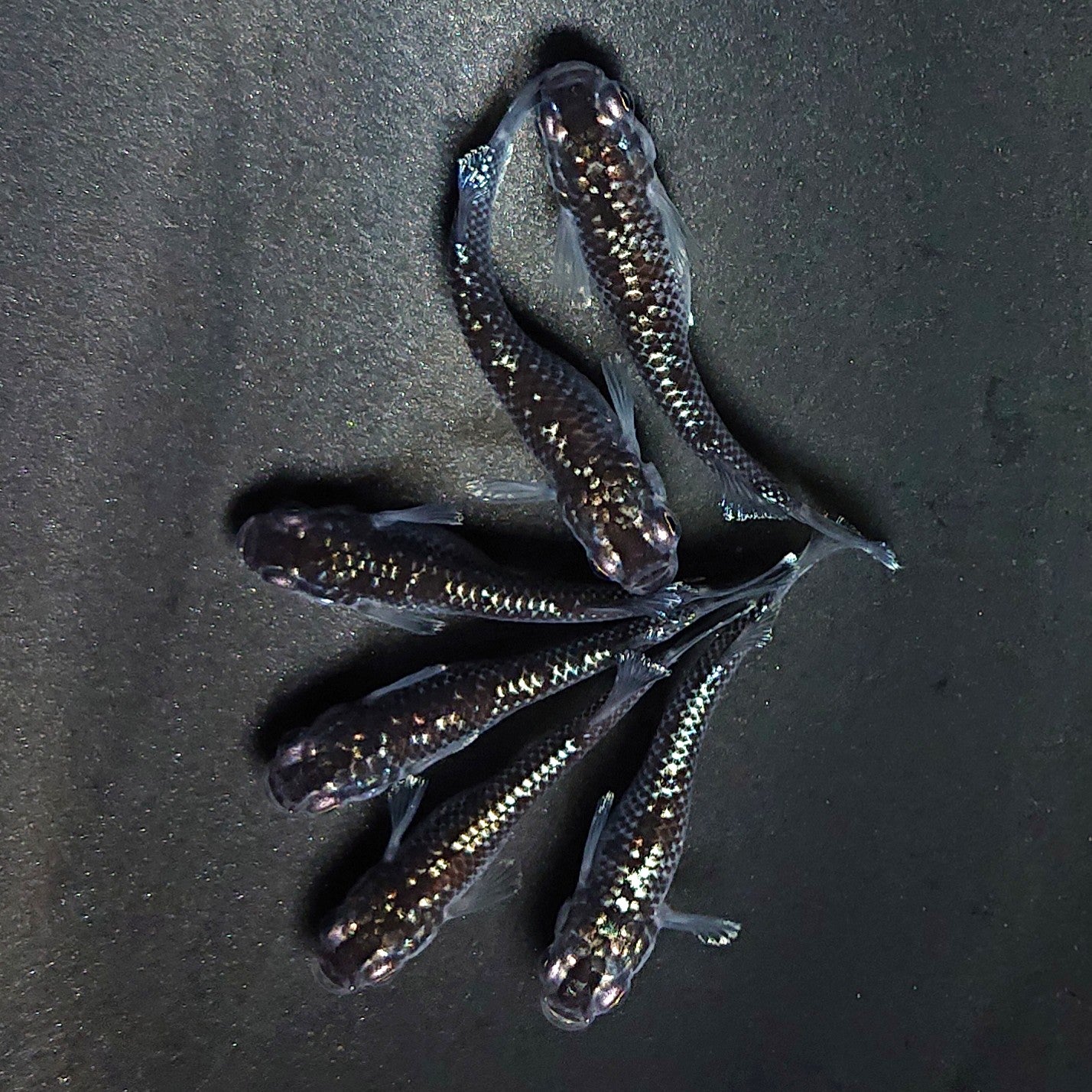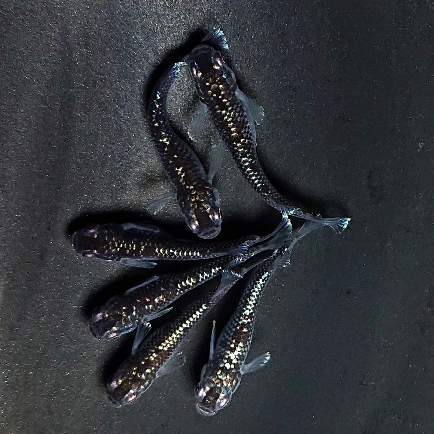 ・ミッドナイトフリルラメtypeです。6匹のセットですので、繁殖にオススメのセット販売になります。ワイドフィン体型品種特有のキャメルバック、脊椎の軽度のクセ等については予めご了承ください。